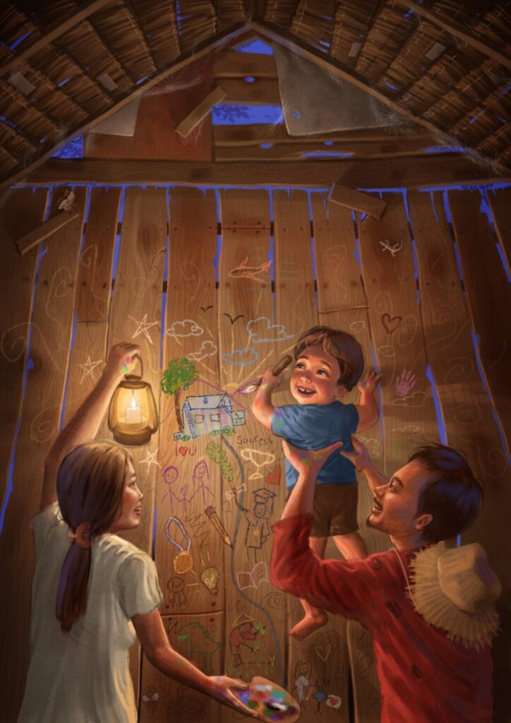 Inspired by his childhood his artwork titled DINGDING, or pader, meaning “wall,” represents the unwavering support of his parents, who encouraged his passion for visual arts despite limited resources. As a child, Clarence often drew on the wooden walls of their simple home, a gesture that reflected his parents’ dedication to nurturing his artistic dreams.