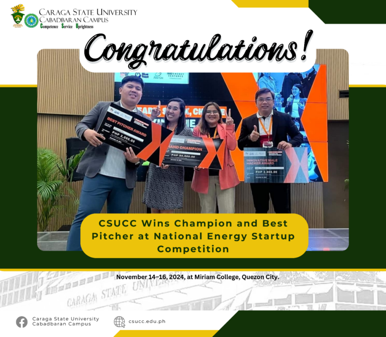 The CSUCC Energy and Power Research and Innovation Center Chief, Engr. Erickson A. Tacda and his team won the Grand Champion and Best Pitcher awards at the New Energy Nexus Philippines –...