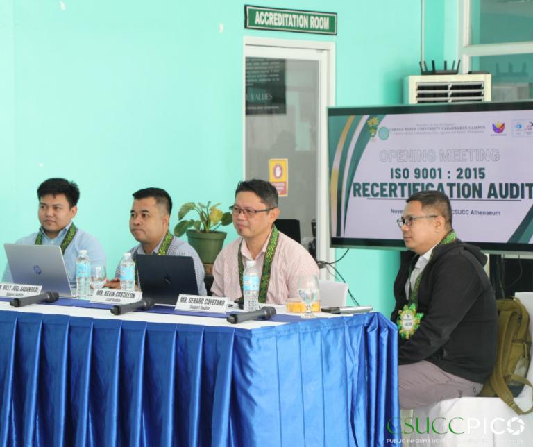 On November 25, 2024, the Caraga State University Cabadbaran Campus (CSUCC) took a significant step toward maintaining its commitment to quality management by welcoming ISO auditors for the ISO 9001:2015...