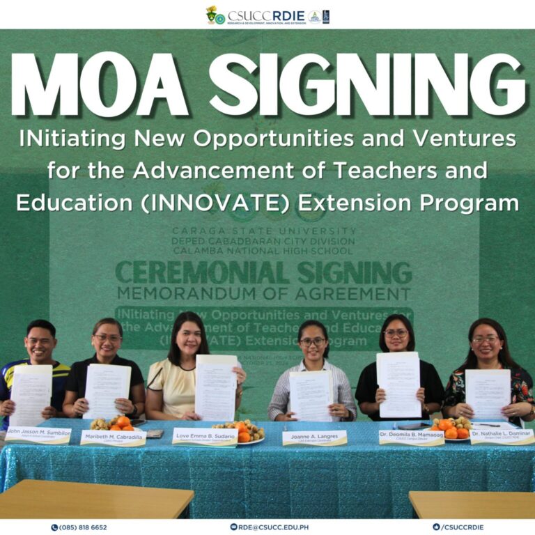 CSU Cabadbaran Campus, DepEd Cabadbaran City Division, and Calamba National High School have officially signed a partnership through the signing of MOA